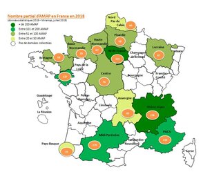 - Données sur les AMAP en 2018 : nombre d'AMAP dans les territoires où nous avons récolté des données, nombre de création d'AMAP, évaluation du nombre moyen de foyers par AMAP, taux d'adhésion au réseau local d'AMAP ...
